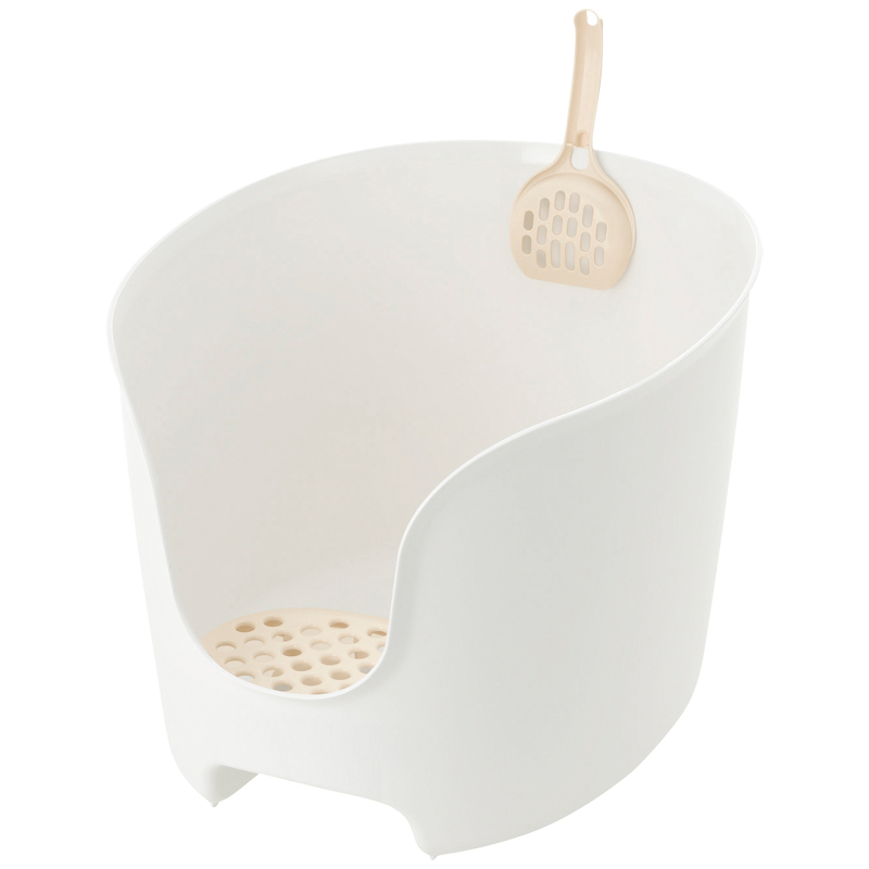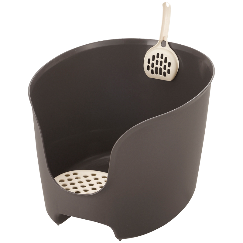 猫砂の飛び散りや砂落としに効果的な壁の高いネコトイレです。